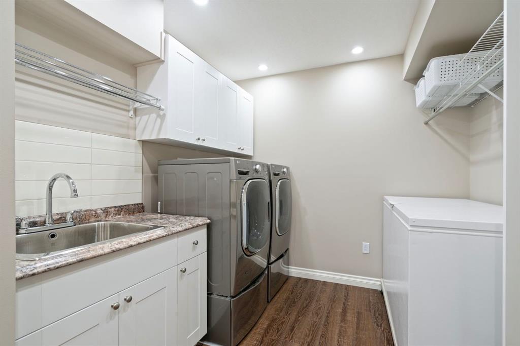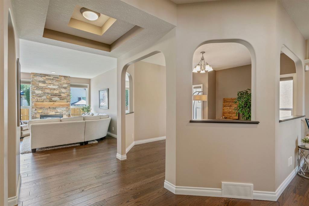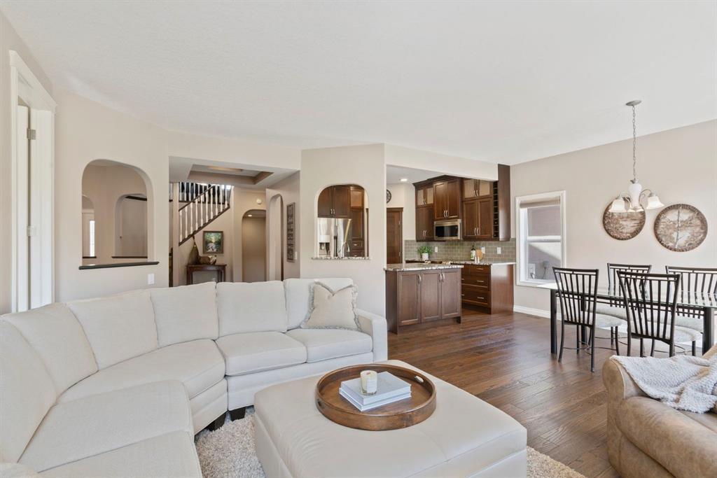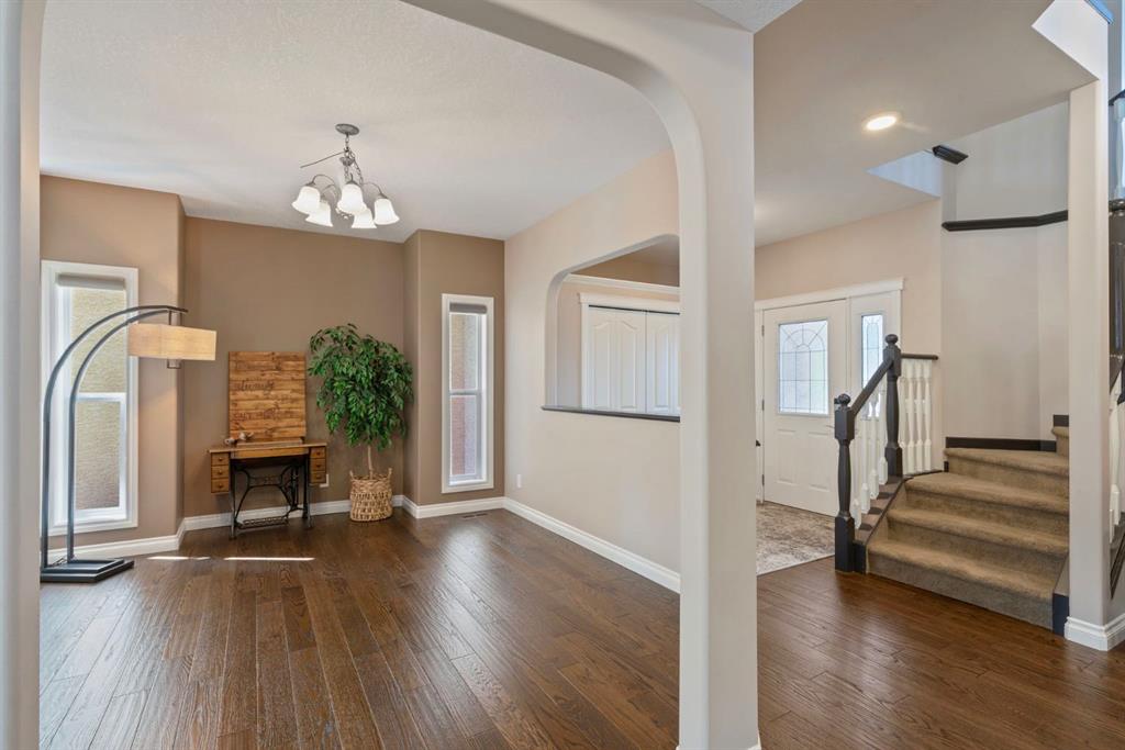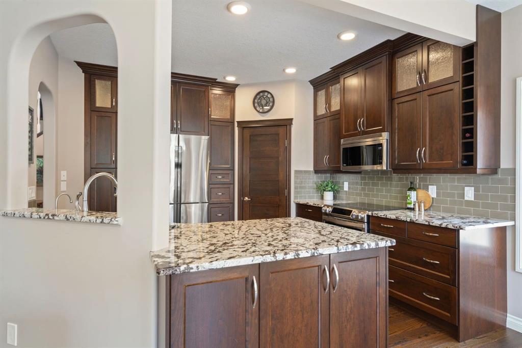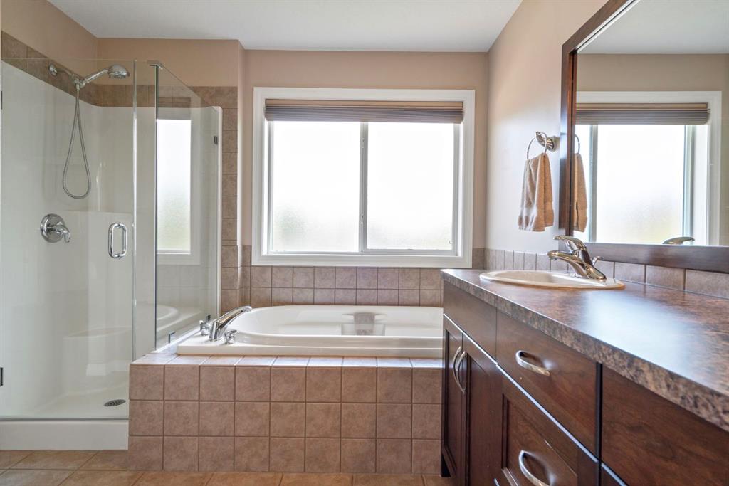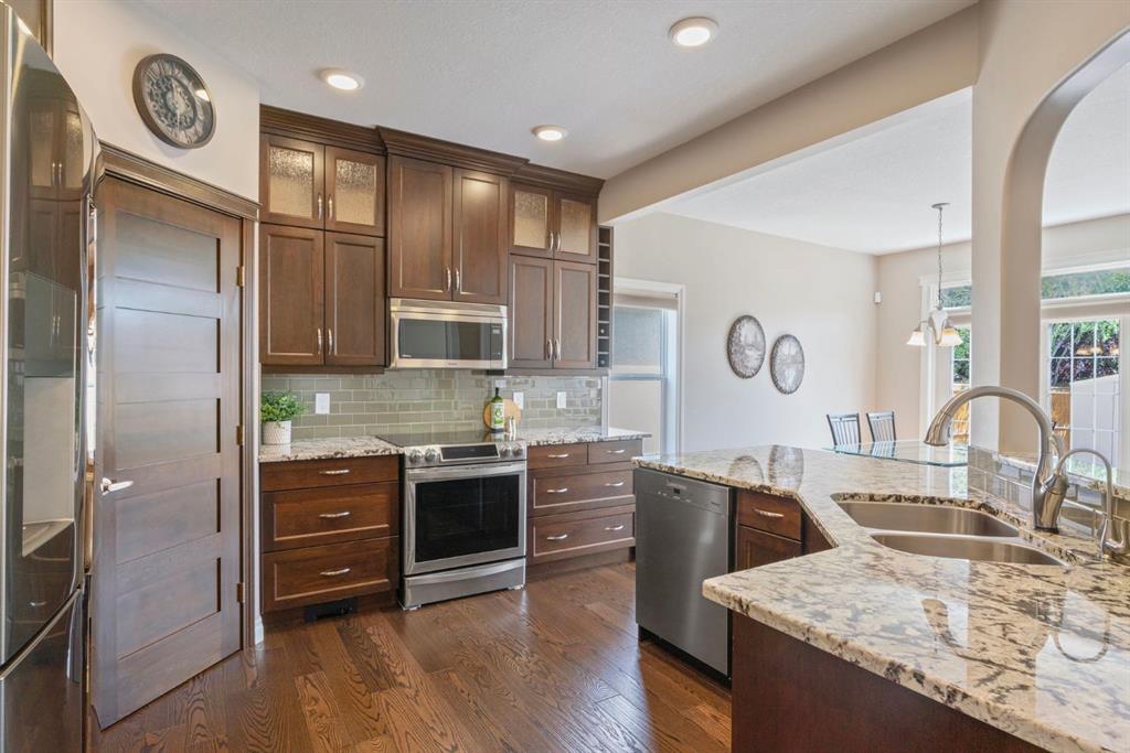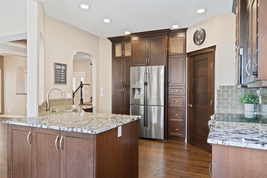 Beautifully Upgraded 5 Bedroom Family Home in Prime Location Near Parks & Schools. Exceptional Jayman Built home-where thoughtful design meets quality craftsmanship. Boasting over 3595 sq ft of fully developed living space on 3 levels, this 5-bedroom, 5 bath home is perfect for families seeking both comfort & elegance. Tucked away on a quiet cul de sac, this home features a DOUBLE attached oversized HEATED garage/aggregate driveway-w/Hot & Cold water & a 220V outlet! Mn floor offers: Gleaming Hardwood, dedicated home office, versatile flex room = formal dining room/playroom/office/music room/learning area! Welcoming living room w/STONE FIREPLACE feature wall, Chef-inspired kitchen w/granite counters, SS appliances, full-height cabinets & walk-in pantry. Elegant dining nook w/oversized windows & patio doors that open onto fenced/landscaped/FLAT backyard—perfect for kids, pets, gardening, entertaining. Gas line for BBQ. Shed included! 2 piece bath on this level. Upstairs, discover a bright sunny bonus room, adds so much extra relaxing or media space. Spacious primary suite featuring luxurious 5-piece ensuite & walk-in closet. 3 additional bedrooms, full 4-piece bath PLUS a bonus 2 pce bath here – perfect for a big family!! In original plan this space is used as upper laundry! Fully finished basement w/RAISED ceiling adds incredible value w/fifth bedroom, full bath, large recreation/media room w/tons of storage – perfect for family movie nights, a home gym or creative space. The best laundry room ever – sink & lots of space for hanging/folding! Pedestal washer & dryer – not only lifts your machines up – but amazing for doing tiny loads, ‘hand wash’ delicates, or soaking! Wine room/cold storage. Enjoy year-round comfort w/9’ ceilings, central air conditioning, Vacuflo. Nearby Fish Creek Provincial Park, one of Canada’s largest urban parks, awaits those wanting to enjoy a family picnic by the Bow River, walk the dog or spend a day cycling on over 100 kms of trails. Community is designed to feel secluded & long distance from busy big city life – but it is only a short distance from important amenities. Seton is right next door – grab a meal, enjoy a pint of craft beer or check out a movie at the theatre. South Health Campus Hospital is a stone’s throw away. Cranston’s Century Hall, a 22,000-square-foot community centre, houses a gym & meeting/banquet rooms. Outside, expect year-round recreation at the splash park, outdoor hockey rink & 2.8-hectare private park. Add in access to public & catholic schools, parks, major roadways, transit + great Neighbours…what are you waiting for!?!